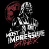 • Strut your stuff with this stylish new Father's Day men's t-shirt that is perfect for celebrating Dad! Featuring Darth Vader and the text "A Most Impressive Father" printed below.