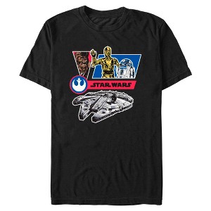 No need to keep looking for fashion help in Alderaan places! Add a little out-of-this-world style to your wardrobe with some truly epic Star Wars styles! Transport yourself to a galaxy far, far away with this new Star Wars The Falcon Team Men's Graphic T-Shirt! This classic tee shows off a colorful graphic of the Millennium Falcon, Chewbacca, C-3PO, R2-D2, and the Rebel Alliance and Star Wars logo. Commemorate this epic film with this new officially licensed apparel that is perfect for Star Wars fans!