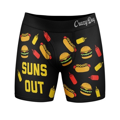 Mens Suns Out Buns Out Boxer Brief Funny Sarcastic Vacation Underwear Novelty Gag Gift - Crazy Dog Boxer Briefs With Sarcastic Sayings Black XL