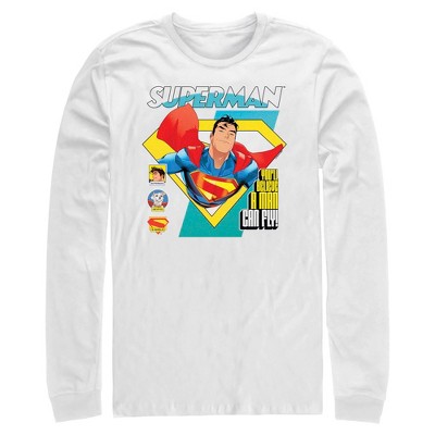 • Show off your favorite superhero with this men's long sleeve t-shirt that is perfect for every occasion! Featuring comic book panels of Superman and Krypto in action, along with iconic symbols and legendary phrases such as "Look Up in the Sky" and "You’ll Believe a Man Can Fly" printed in bold red lettering.