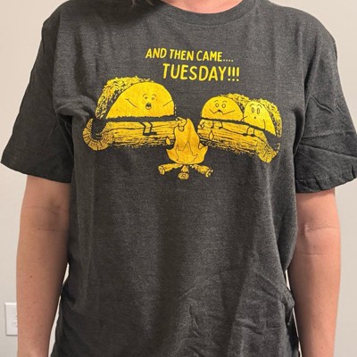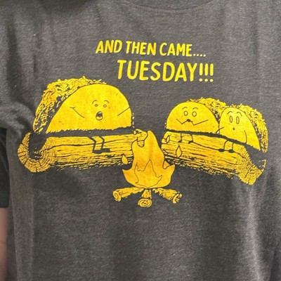 Funny Graphic Tee for Men: Features a hilarious “And Then Came Tuesday” ghost story print with tacos by a campfire; perfect for taco fans, food humor lovers, or anyone who treats Taco Tuesday like a weekly holiday.