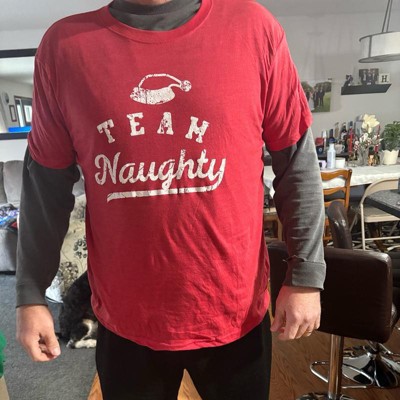 Mens Team Naughty T Shirt Funny Xmas Party Santas List Tee for Guys - Crazy Dog Men's T Shirt Gift For Christmas Red M