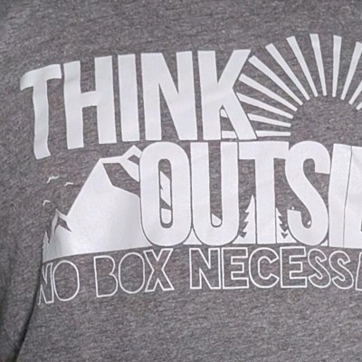 Mens Think Outside Funny No Box Necessary Hiking Camping Vintage Graphic T shirt - Crazy Dog Men's T Shirt For Campers - 1 of 4
