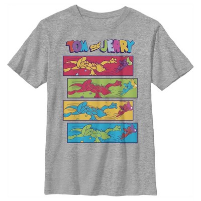 Mens Tom & Jerry Battle Shirt - Classic Hanna-Barbera Tee - Vintage Cartoon Short Sleeve T-Shirt (Heather, Large)
