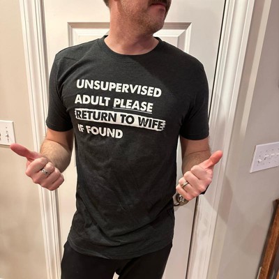 Mens Unsupervised Adult Please Return to Wife If Found T Shirt Funny Adulting Joke Tee for Guys - Crazy Dog Men's T Shirt Gift for Wedding - 1 of 4