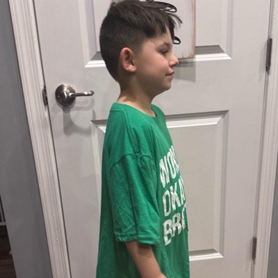 [This review was collected as part of a promotion.] We thought this would be perfect for my son because there is a matching sister one he’s pictured here wearing the size small but after further review, this was made way too big for him. He typically wears a size medium, but this one was oversized over overall the quality of the shirt is OK. The lettering is already peeling because it’s screen printed on but the T-shirt quality is fine.