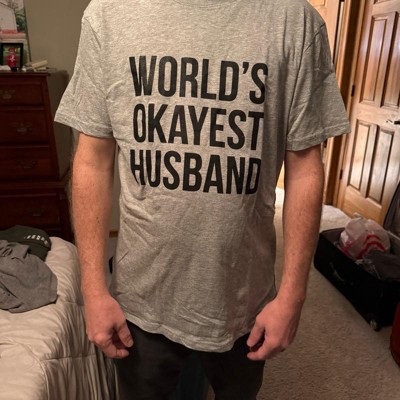 Mens Worlds Okayest Husband T shirt Funny Hilarious Gift for Dad Sarcastic - Crazy Dog Men's T Shirt Gift for Dad Light Grey S