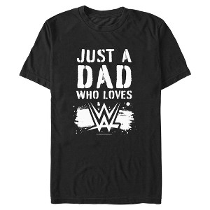 • Strut your stuff with this stylish new Father's Day men's t-shirt that is perfect for celebrating Dad! Featuring the phrase: "Just A Dad Who Loves" and the WWE logo in front of a splatter.