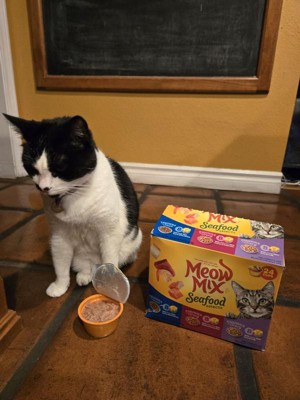 My cat loves Meow Mix. He gets full from the variety of flavors I have to offer him and takes a long nap. He loves the different options of bites. And I love the variety of flavors in this box.