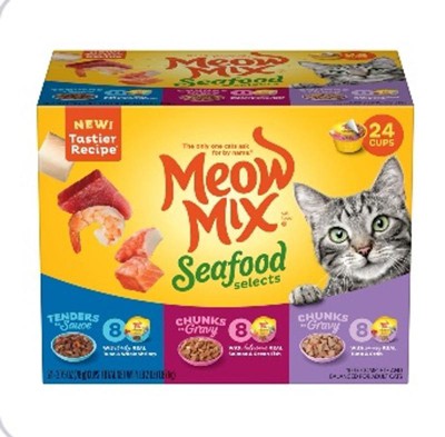 Meow Mix Seafood Selections Wet Cat Food with Shrimp, Salmon, Crab & Tuna Flavor - 2.75oz/24ct Variety Pack