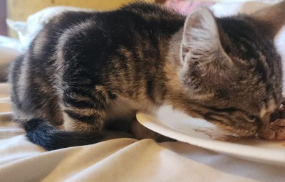 [This review was collected as part of a promotion.] My cats love this food. It's got a perfect texture and it's easy for them to eat. They always lick the plate clean. Good-sized portions for the kittens to share. We are happy with it.