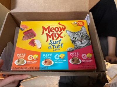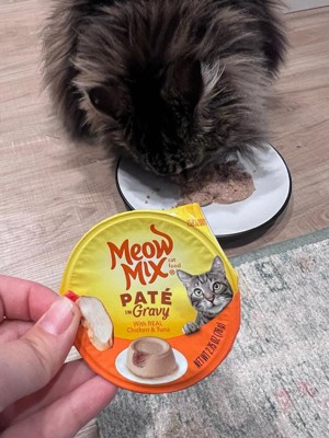 [This review was collected as part of a promotion.] My cat loves Meow Mix Pâté in Gravy! The packaging is eye-catching and features a picture of a happy cat, which matches my cat's expression when they're eating it. The product comes in a convenient container that's easy to open and serve. My cat devours it eagerly, and I appreciate the variety of flavors available. Overall, I'm satisfied with Meow Mix Pâté in Gravy and would recommend it to other cat owners.