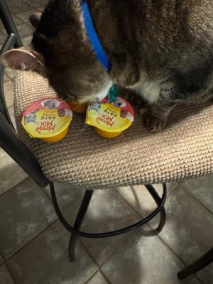 [This review was collected as part of a promotion.] My cats eat dry meow mix so I was pretty sure they would like this. And they do. They come in plastic cups with thin plastic lids that aren't resealable. I would at least prefer to have foil lids to recluse if the entire cup isn't used at once. I have lids for regular metal cans but they don't fit on these even close. They are more the size of an applesauce for your lunchbox.