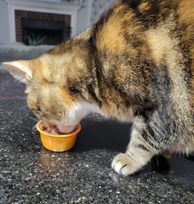 [This review was collected as part of a promotion.] My cats seem to like the tuna flavor a little more then this one, but they still gobble it just the same. Spoiling our kitties one dish at a time is big.