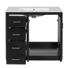 Upgrade your bathroom with this stylish and practical 36" Freestanding Bathroom Vanity. Crafted with a solid wood frame and high-quality MDF construction, this vanity offers durability and modern design. It features a ceramic sink, spacious storage cabinet, and three drawers, each equipped with smooth drawer slides for easy access. The soft-closing doors and elegant metal handles provide both functionality and style. Designed with convenience in mind, each part is pre-marked with reserved holes for an easier assembly process.