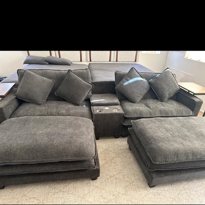 - [Handy Cup Holders for Convenience] Enjoy your favorite beverage without the worry of spills. The two cup holders in the middle of the sectional are designed to keep your drinks within arm's reach, so you can enjoy a movie or hang out with friends without getting up.