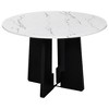 - [43-Inch Round Dining Table with Marble Paper Veneer] The 43-inch round table is the perfect size for a small family or intimate gatherings. Its MDF tabletop is beautifully wrapped in marble paper veneer, offering a realistic marble look while being easy to maintain. The natural texture variations of the veneer ensure that each piece is unique, adding an authentic touch of elegance to your dining area.