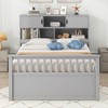 - [Multi-Level Storage Headboard with Cabinets and Shelves] The headboard is designed to be more than just a stylish accent. It features three separate storage compartments for easy access to books, photos, or electronics. Plus, two cabinets with doors offer additional space for storing personal items out of sight, keeping your room tidy and organized. This smart headboard is the perfect solution for maximizing vertical space.