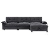 - [Multifunctional Armrest with Pull-Out Design] The armrest on one side of the sectional features a pull-out design that reveals a hidden storage compartment—perfect for storing remote controls, magazines, and other essentials. It also includes built-in cup holders to keep your beverages secure and dual charging ports for your devices, ensuring constant power while you relax.