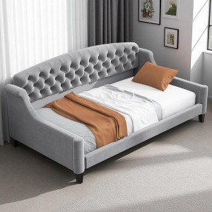 - [Velvet Upholstery with Soft Foam Padding] Wrapped in plush velvet fabric, this daybed feels soft to the touch and adds a touch of glamour to any space. Underneath the fabric, high-resilience foam padding ensures lasting comfort whether you’re sitting, lounging, or sleeping.