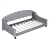 - [Elegant Curved Design with Tufted Detailing] The gently arched backrest and gracefully sloped arms give this daybed a sculptural presence that stands out while staying versatile. The diamond-tufted upholstery adds a refined, tailored touch, making it an easy fit in both modern and transitional interiors.
