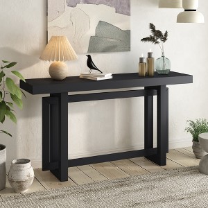 - [Triple Rectangle Leg Design for a Modern Touch] The standout feature of this entryway table is its triple rectangle design, which offers a contemporary and unique look. The interlocking rectangular legs not only add a stylish aesthetic to the piece but also contribute to its sturdy structure. This design ensures your console table will stand out in any entryway or living room while maintaining a sleek, minimalistic silhouette.