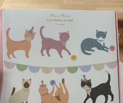 - This garland features 6 kittens, 5 tissue paper honeycomb balls and a scalloped garland with 12 pennants.