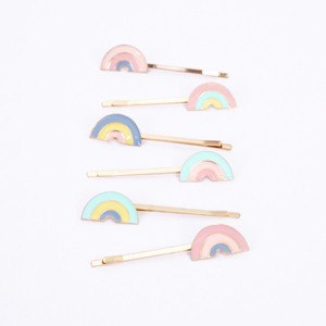 Make your hairstyle look rainbow bright no matter what the weather, with this wonderful set of hair slides. They feature colorful rainbows crafted in enamel. Enamel rainbows in 5 colors. Gold tone hair slides. Suitable for ages 8+. Set of 6 in 6 colors. Pack dimensions: 3.125 x 4.125 x 0.625 inches