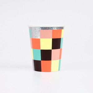 - These paper cups showcase a bright retro checkerboard pattern for a touch of vintage charm. Perfect for bringing a fun, hi-tech vibe to your gamer night decorations.