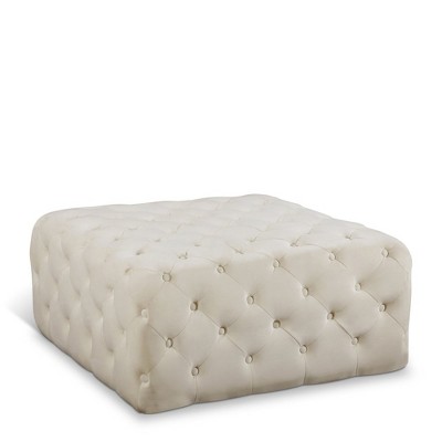 Rest weary legs at day's end atop the welcoming comfort of this Addison cream velvet ottoman. This Hollywood-inspired ottoman features deep button tufting from top to bottom for a luxe look and is covered in velvety upholstery for added glam. The vibrant cream color makes a bold statement in your space and adds a pop of cheery color to your room. This substantially sized ottoman also doubles as an extra seat and is padded thickly for supreme comfort