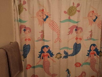 Mermaid Dreams Kids' Shower Curtain - Dream Factory: Light Blue Polyester, Easy Care, Kids Bathroom Decor