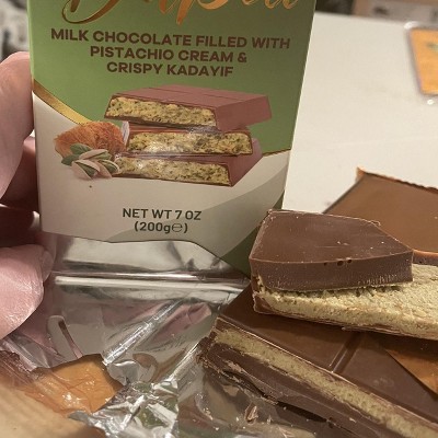 Really delicious! The bar itself is thick with lots of crunchy pistachio and kataifi filling! One of my favorite Dubai chocolate bars and slightly cheaper than other options! Highly recommended!