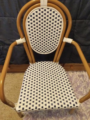 Product Name: Merrick Lane Celia Set of Two Stacking Thonet Bistro Style Chair with Arms, White & Gray PE Rattan Seat, and Bamboo Metal Frame for Indoor/Outdoor Use
