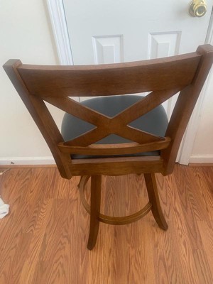 [This review was collected as part of a promotion.] This swivel counter height barstool with padded black leather soft seat in the beautiful gray wash walnut finish is a great addition to our finished basement with a kitchen island. It has a nice classic style that fits in any décor. The barstool was easy to put together and came with all parts and screws needed and easy to follow instructions. It has the perfect height and I love that it swivels. The padded seat and the footrest are very comfortable. The wood is of great quality. I highly recommend this barstool!
