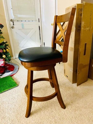 [This review was collected as part of a promotion.] I love this swivel counter height chair. It was very easy to assemble. Took about 45 mins by myself. It is rock solid once assembled and looks amazing in my kitchen. It would look great anywhere especially if you have a bar setup. The wood color really goes with any decor. The seat itself is very comfortable. I have sat in it for well over an hour and it was very comfortable.