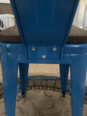 [This review was collected as part of a promotion.] Lily 24” high blue metal counter height stool with back and wood seat is perfect for your dining room, kitchen counter or bar. It is stylish and gives my home a refreshing rustic feel with its metal and wood features. This beautiful stool is designed for both commercial and residential use. It features a curved back with a vertical slat and a cross base for added support and stability. The wood seat adds comfort and beauty and the glides protect my floor by sliding smoothly when moving. It is well designed, well made, sturdy and easy to assemble. Great product, highly recommend.