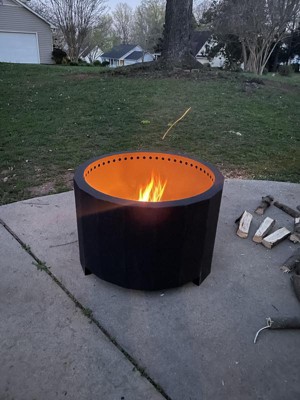 [This review was collected as part of a promotion.] This fire pit is nice and big. We put some concrete pavers under the fire pit as a base for it to sit on. After our fire, I emptied the ash out, and a lot of it fell through the grate, so I had to tip the whole pit over. This wasn't the easiest to clean up. I also wasn't smokeless, either. There was so much smoke, and everyone smelled like smoke, too. I did like that it came with the waterproof cover.
