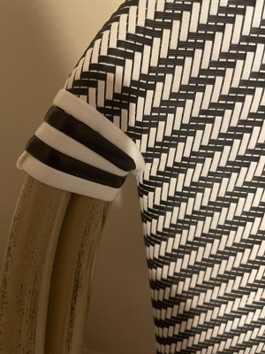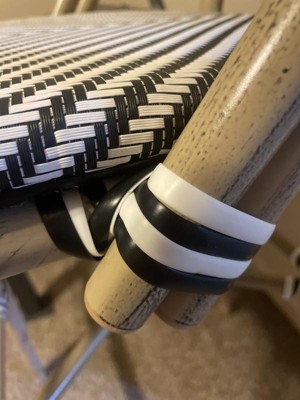 [This review was collected as part of a promotion.] I like the black and white woven seats but I don’t like how they tied in the corners. I don’t think it looks good. And I don’t like the way the legs look. I think it’s supposed to look like bamboo but it looks like plastic with a greenish tint. The seat is comfortable for me but I think it would not be for a bigger person. I was disappointed.