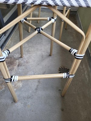Merrick Lane Mael Set of Two Stacking Bistro Style Bar Stools w/ Black and White Textilene Seats and Light Bamboo Metal Frames for Indoor/Outdoor Use