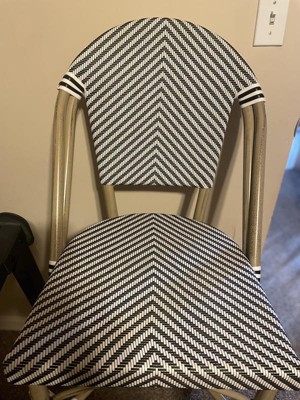 [This review was collected as part of a promotion.] Marseille stackable indoor and outdoor French bistro 30" high barstool is a great chair. It is commercial grade high quality and will last a very long time. It is comfortable chair. It is black white weaved material and has a light bamboo finish. It can hold up to 600lbs. The design goes with everything.