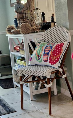 Elegance comes easy to this set of 2 bistro chairs with woven PE rattan backs and seats offering supportive seating in three color options to suit your style. The weather resistant aluminum frames feature a powder coated bamboo finish for a wood look without the upkeep and each chair supports up to 400 lbs. static weight. Floor glides ensure smooth movement and protect your hard flooring surfaces when used indoors. The lightweight, stacking design is perfect for rearranging and storage when not in use. Your chairs arrive preassembled and wipe clean with a damp cloth.
