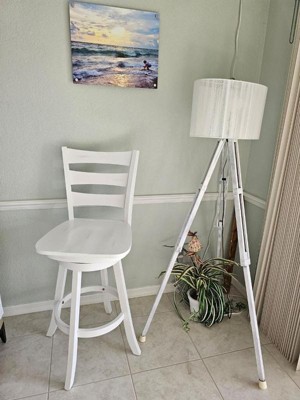 [This review was collected as part of a promotion.] This Laurel Wooden Swivel Ladderback Bar Stool in Antique White Wash is a really pretty bar stool and I love the way it swivels and it is really good quality, I don't really have anywhere to put it right now but I'm planning on moving and if I get the place I want I can use it under the counter in my kitchen which will be perfect but I absolutely love it, it was extremely easy to put together, took me a couple hours cuz I did it myself and I'm a little uncoordinated but I did it lol... I definitely recommend this bar stool, if I move I might even get a few more and a table to match and use it as a dinette set, but I'm not sure yet. But I absolutely love it, definitely recommend