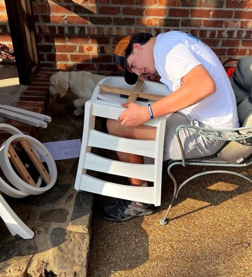 [This review was collected as part of a promotion.] This chair took my 15-year-old 48 minutes to put together. There were three different types of washers and it came with an Allen wrench. He chose not to read the directions and it ended up great. It’s pretty easy. Don’t look at the pictures and get it put together. We got the white, and he wants to put stickers on it in his music room when he plays guitar. It’s actually perfect for this because it doesn’t have any arm rest to get in the way.  he 6’2” and weighs 215 and felt like the back had a little gift to it but I almost feel like that’s the design it does spin around and it is very heavy and solid. 🎸 It is bar height, and the high back and deep seat are great for people like us who are tall. I’m extremely happy with my product!