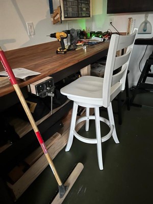 [This review was collected as part of a promotion.] This wooden classic laddersback is very nice. I love that it’s swivel and made with solid wood. It’s a great addition to my bar. Very comfortable and I love the design. The assembly was very simple. It’s very durable. I love it!