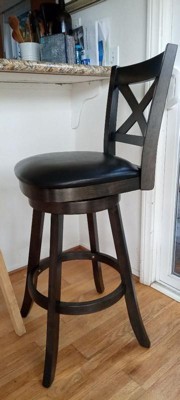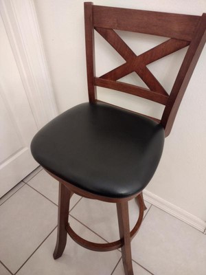 [This review was collected as part of a promotion.] This Francis Classic wooden swivel bar stool in antique oak is very well made and the cross wood details are just beautiful. I love that it swivels and is nicely padded which makes it so much more comfortable and useful in our daily use.