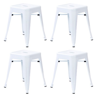 Merrick Lane Backless Metal Dining Stool with Wooden Seat for Indoor Use