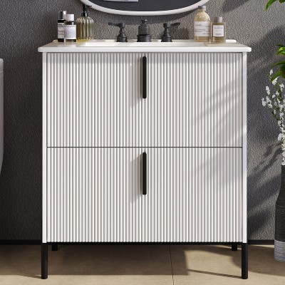 [This review was collected as part of a promotion.] I have had this vanity installed for a little while now and it's been a wonderful upgrade from a sink that was broken after the ceiling vent fell and broke the previous sink. If I had known a little more I would have possibly chosen a different faucet, because the short depth of the sink can sometimes lead to a lot of splashing with the faucet at full power. At first glance, this vanity looks great, but when you look closer, it’s a little cheap. The wood is easily scratched and the thin veneer can be scraped by accident with a fingernail. I wouldn’t expect it to hold up for years if you’ve got kids or a high-traffic bathroom. That said, it's perfect for a rental unit, a budget-friendly bathroom upgrade, or as a DIY project. I will likely need to repaint it in a couple of years based on how much has already come off. Assembly is about as intimidating as building a bookshelf. If you’ve done that before, you’ll have no problem here. It’s more open in the back, which can be convenient for plumbing but feels a bit unfinished. The proportions are slightly off with the sink top higher quality than the cabinet itself, which makes the cabinet’s super-thin veneer stand out more. The drawer is usable but flimsy, and the guides could definitely be smoother. It's basically a bookshelf with a marble sink top and for the look it's nice. An affordable way to upgrade without having to take out a loan just for a nice looking sink.