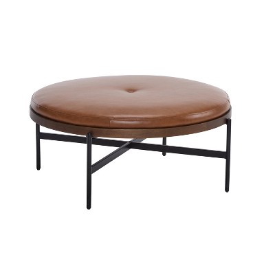 Merrick Lane 34-Inch Round Tufted Cotton Linen Ottoman with Durable Metal Frame, Gray Cotton Linen/Black Frame