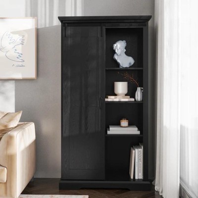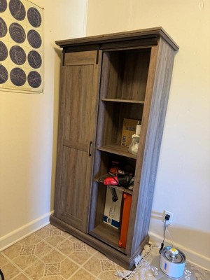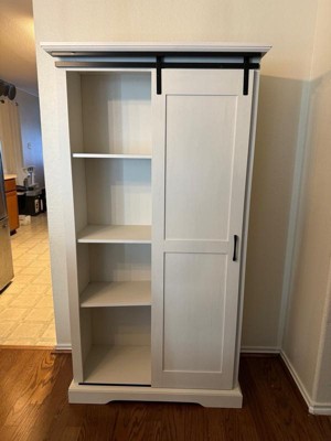 [This review was collected as part of a promotion.] I’m In love with this storage cabinet! It’s very heavy and sturdy! It features adjustable shelves and a sliding barn door! It has soo make space to store just about anything and can go anywhere in your home