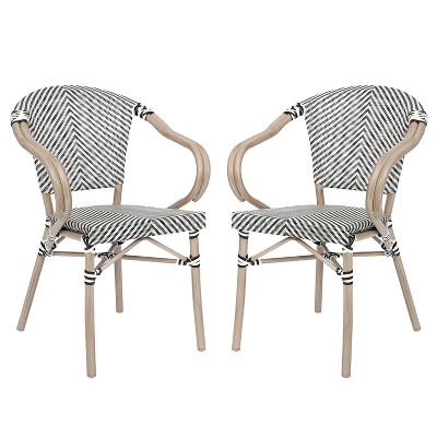 Merrick Lane Mael Set of Four Stacking Thonet Bistro Style Chair with Arms, Textilene Seat, and Bamboo Finished Metal Frame for Indoor/Outdoor Use